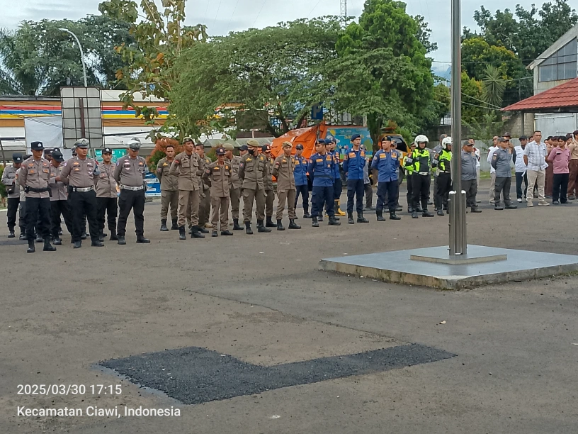 Apel Bersama Kesiapan Pengamanan Malam Takbiran Hari Raya Idul Fitri 1446 H di Wilayah Hukum Polsek Ciawi