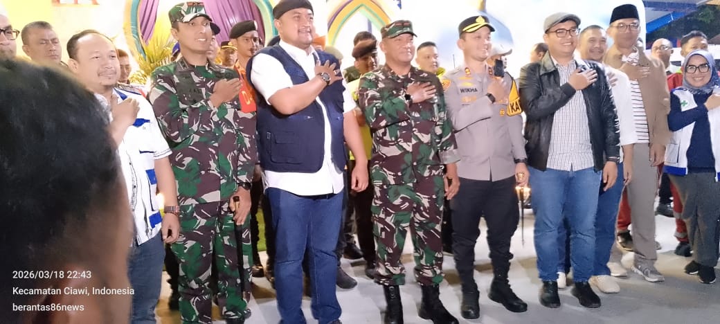 berantas86news | BOGOR – Menjelang perayaan Hari Raya Idul Fitri, Bupati Bogor bersama Kapolres Bogor melakukan kunjungan ke Pos Pengamanan (Pospam) Hoegeng Gadog, Kecamatan Ciawi, Kabupaten Bogor, Rabu malam (18/3/2026).
