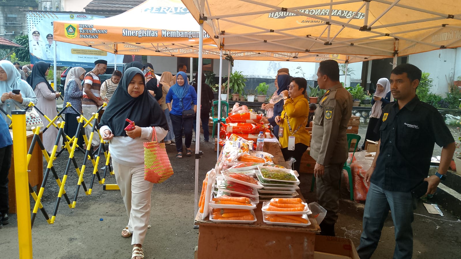 Pantauan di lokasi, ratusan warga tampak mengantre untuk membeli berbagai komoditas pangan strategis seperti beras, minyak goreng, gula pasir, telur, daging ayam, hingga kebutuhan pokok lainnya yang dijual dengan harga di bawah harga pasar.