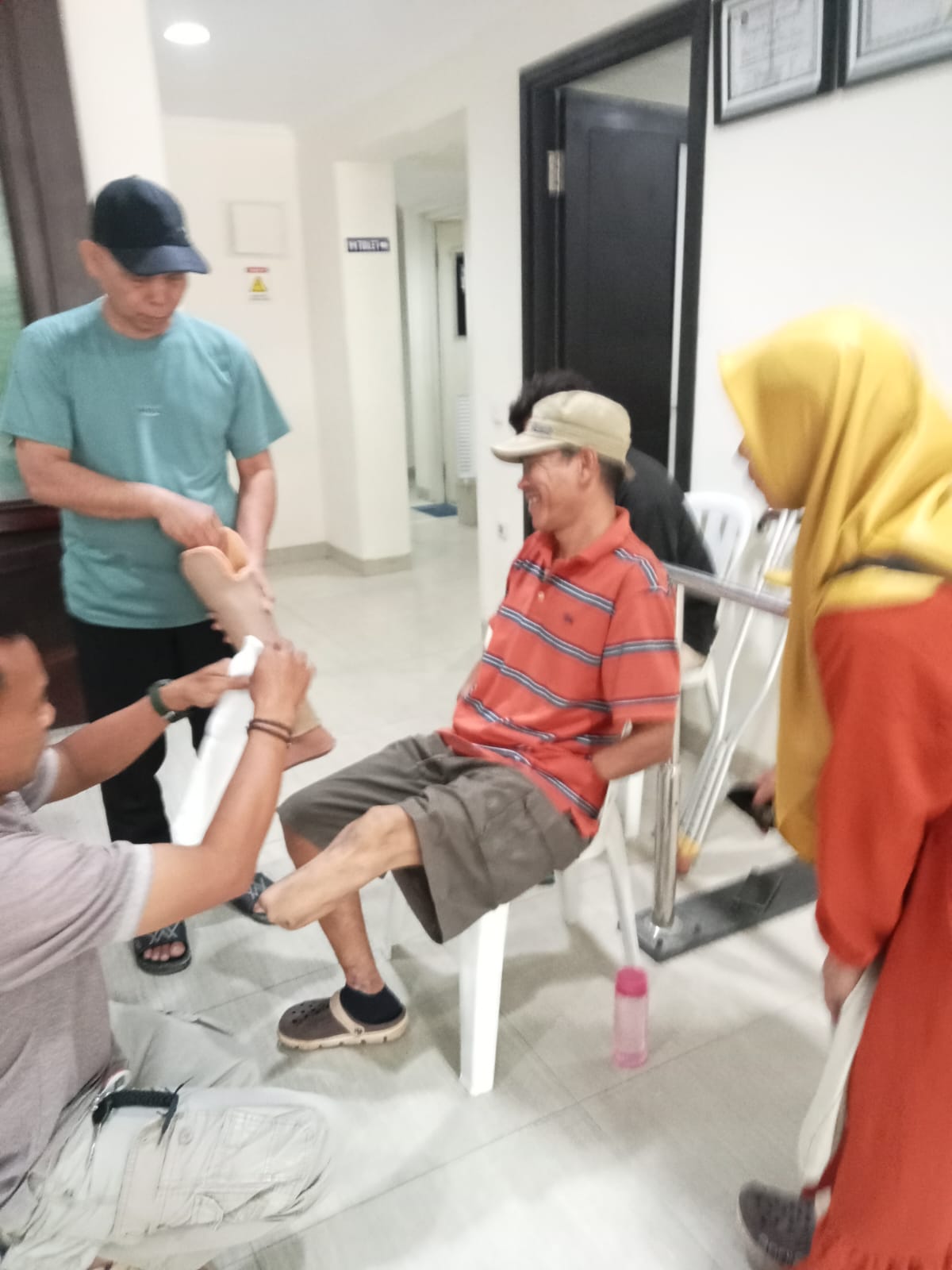Kegiatan sosial ini tidak hanya sebatas penyerahan bantuan, tetapi juga diisi dengan sesi edukasi dan pendampingan teknis penggunaan kaki dan tangan palsu, agar para penerima dapat menyesuaikan diri dengan alat bantu secara optimal.